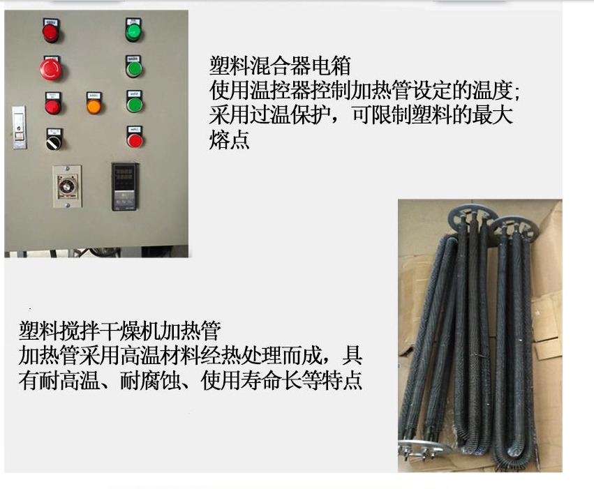 8、干燥混合功能二合一,當(dāng)不需要干燥時(shí),只需將"加熱開關(guān)"及"風(fēng)機(jī)開關(guān)"關(guān)閉,本系列機(jī)型即可用于塑料攪拌均化用途,一機(jī)二用.